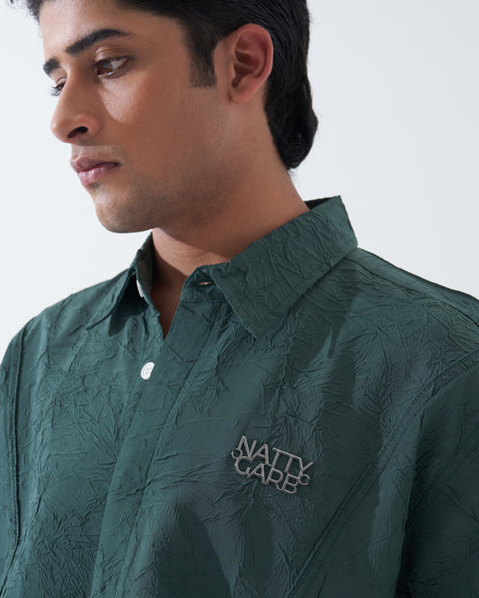 CRINKLED BOTTLE GREEN SHIRT