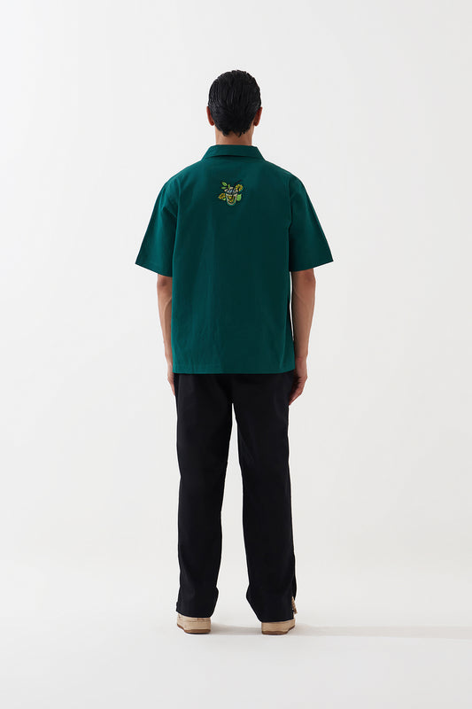CRINKLED BOTTLE GREEN SHIRT